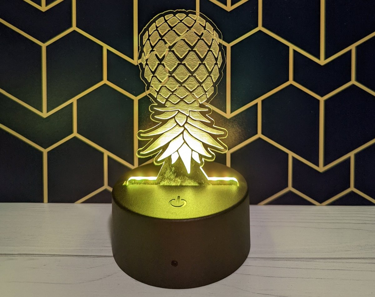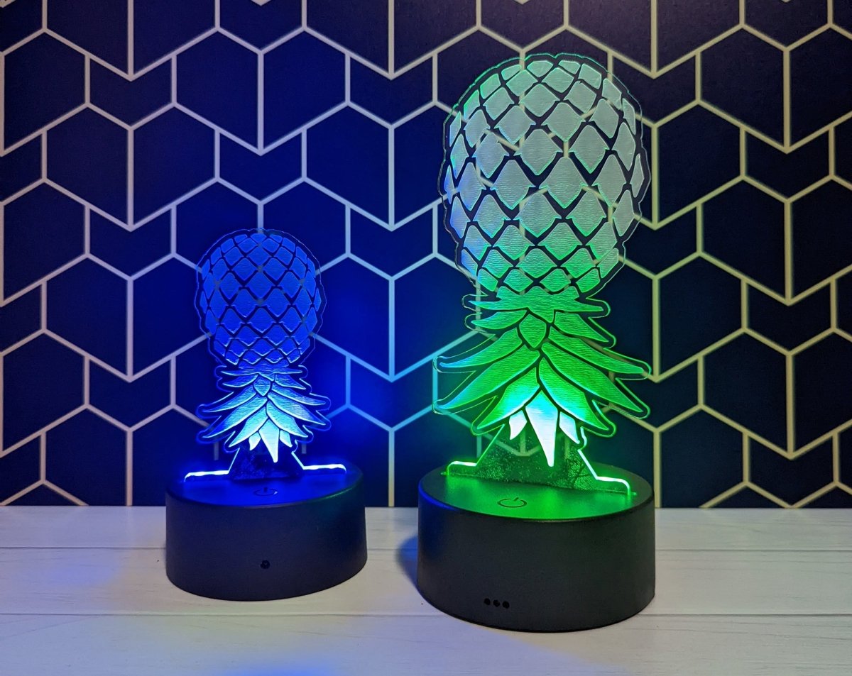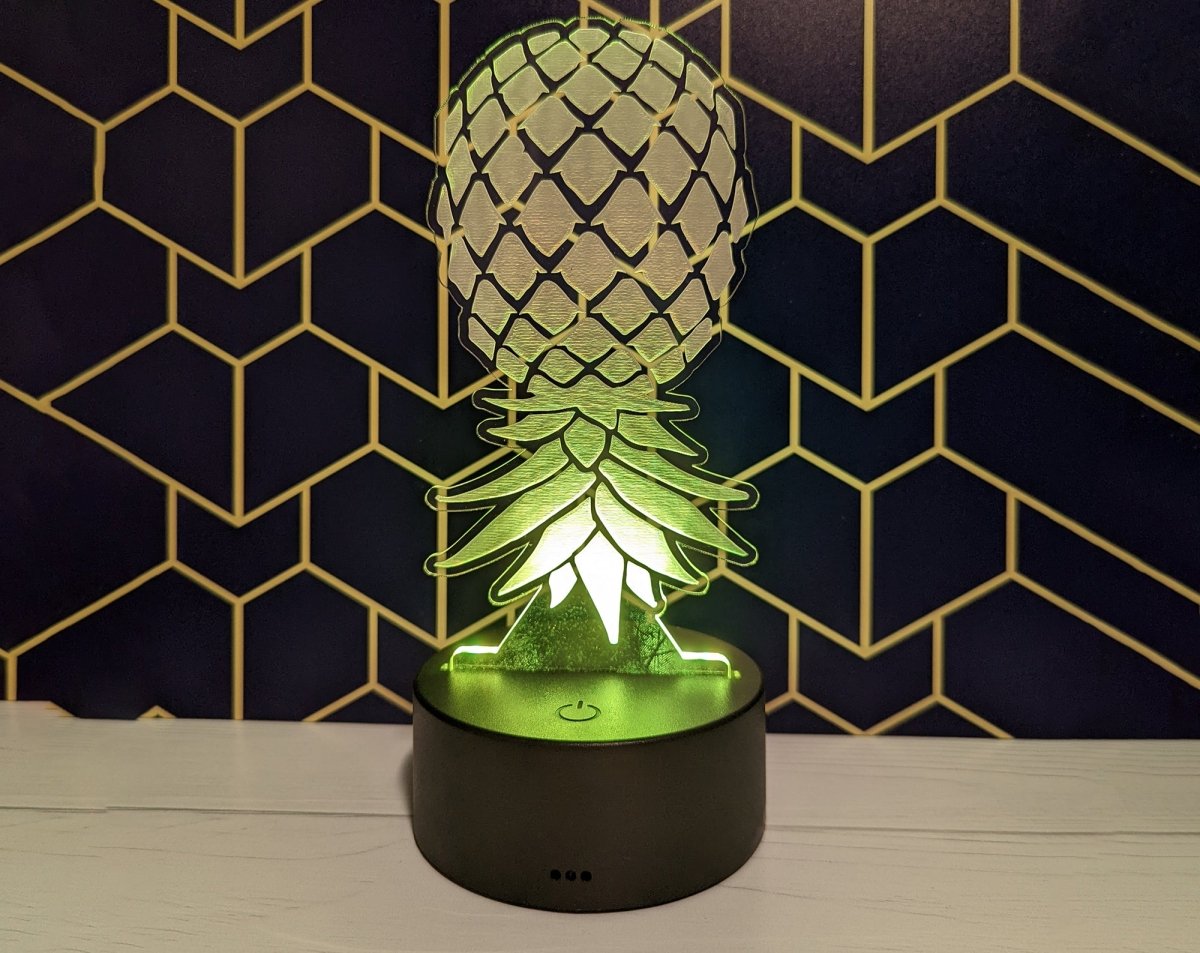 Laser engraved Upside Down Pineapple LED light lamp.