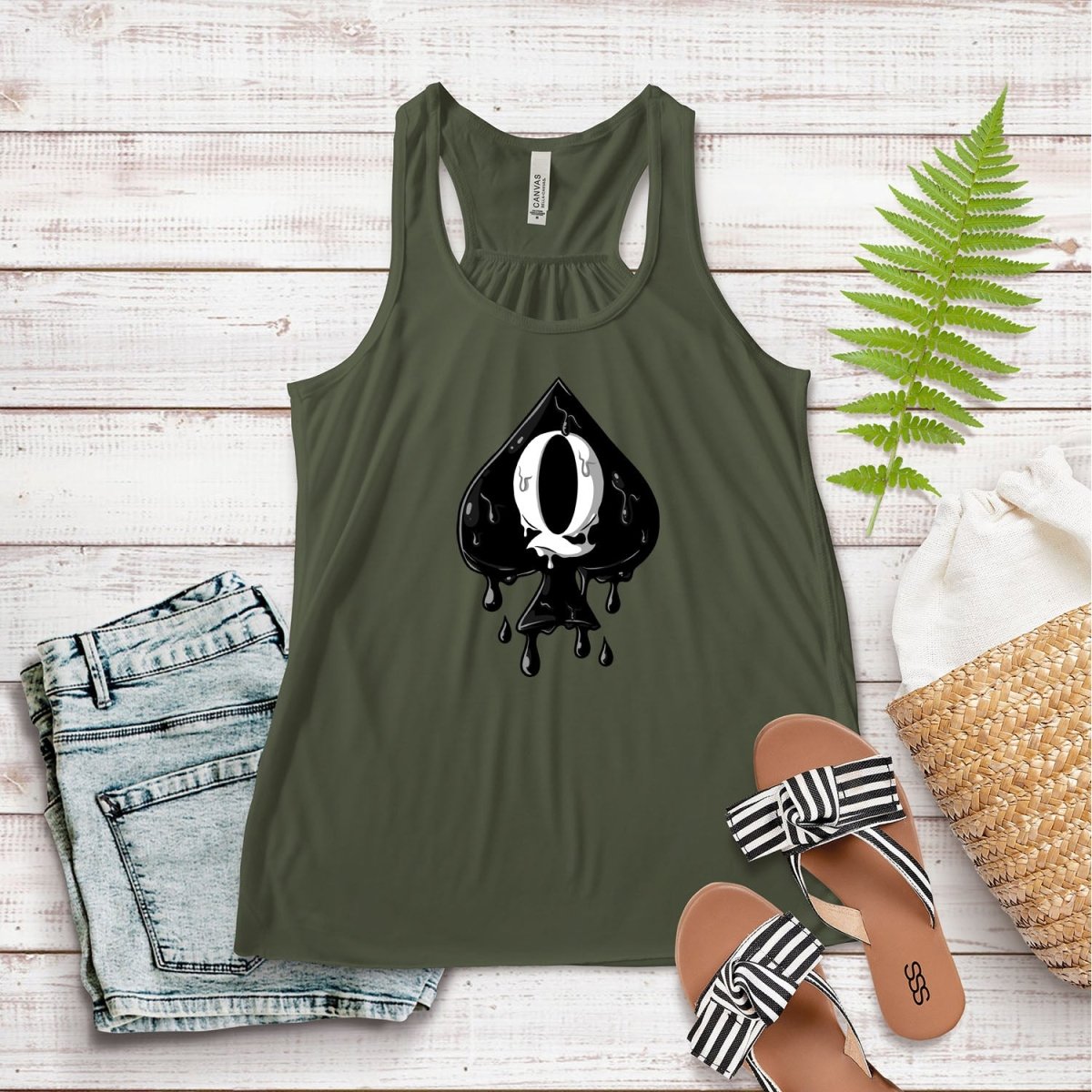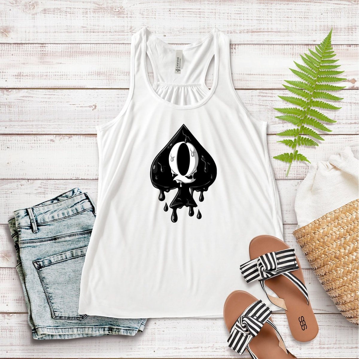Crafted from soft, breathable fabric, it promises both comfort and longevity. Whether you're layering it under a jacket for a night out or wearing it solo for a relaxed day in, this piece promises to stand out. The dripping Q graphic, symbolizing the mysterious and alluring 'Queen of Spades' lifestyle, is a conversation starter, to say the least.