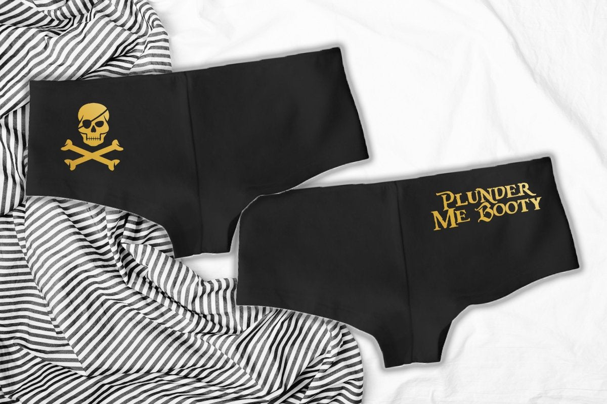 Plunder Me Booty Black Sexy Cheeky Panties | Skull & Cross Bones Hipster Shorties | Pirates of the Caribbean Inspired Sexy Naughty Lingerie