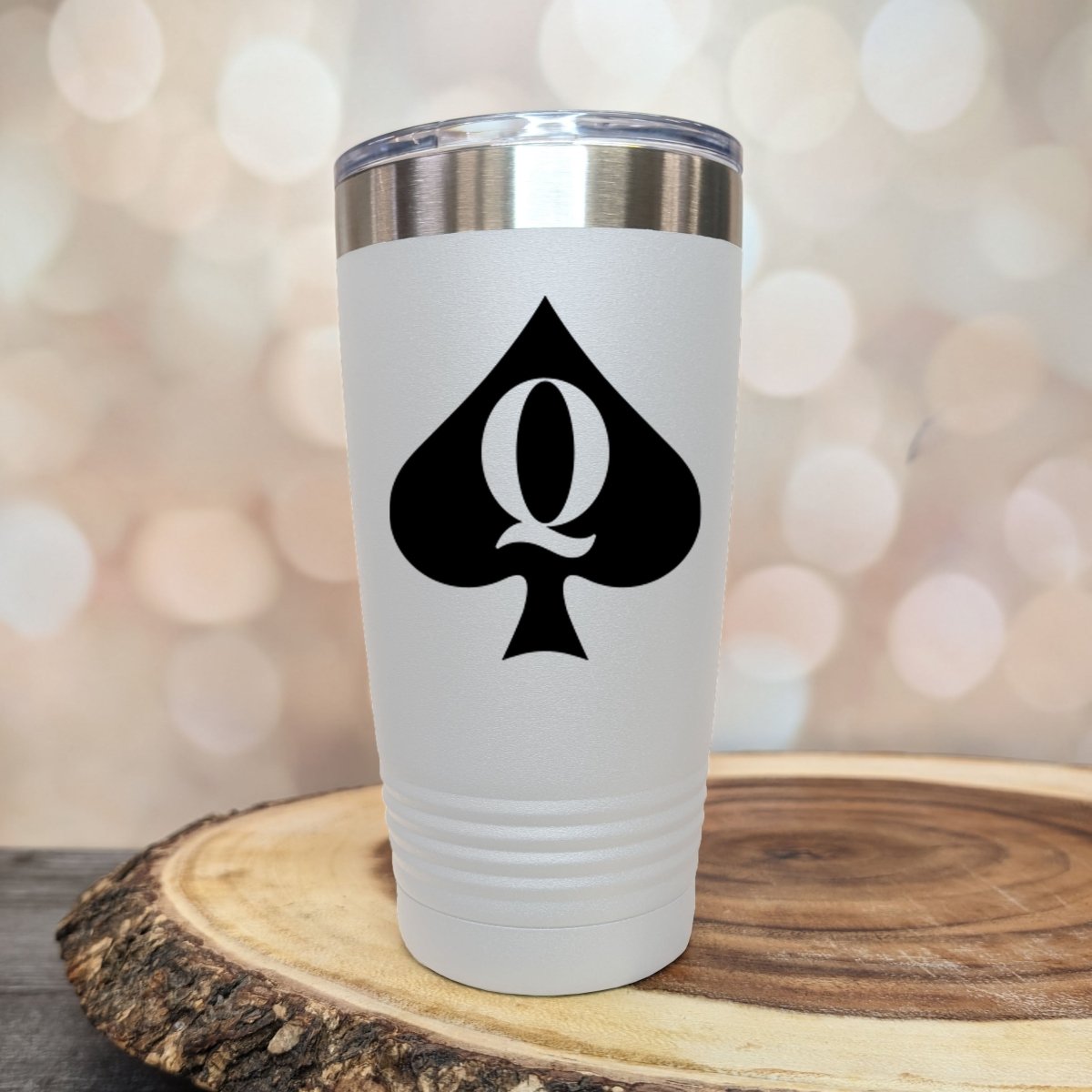 Crafted with exquisite detail, the Queen of Spades symbol, featuring a fancy Q cut out of the center, adds an element of intrigue and allure to every sip. Whether you're embarking on a wild weekend adventure with your special someone or simply enjoying a flirtatious outing during the week, this tumbler is your perfect companion.