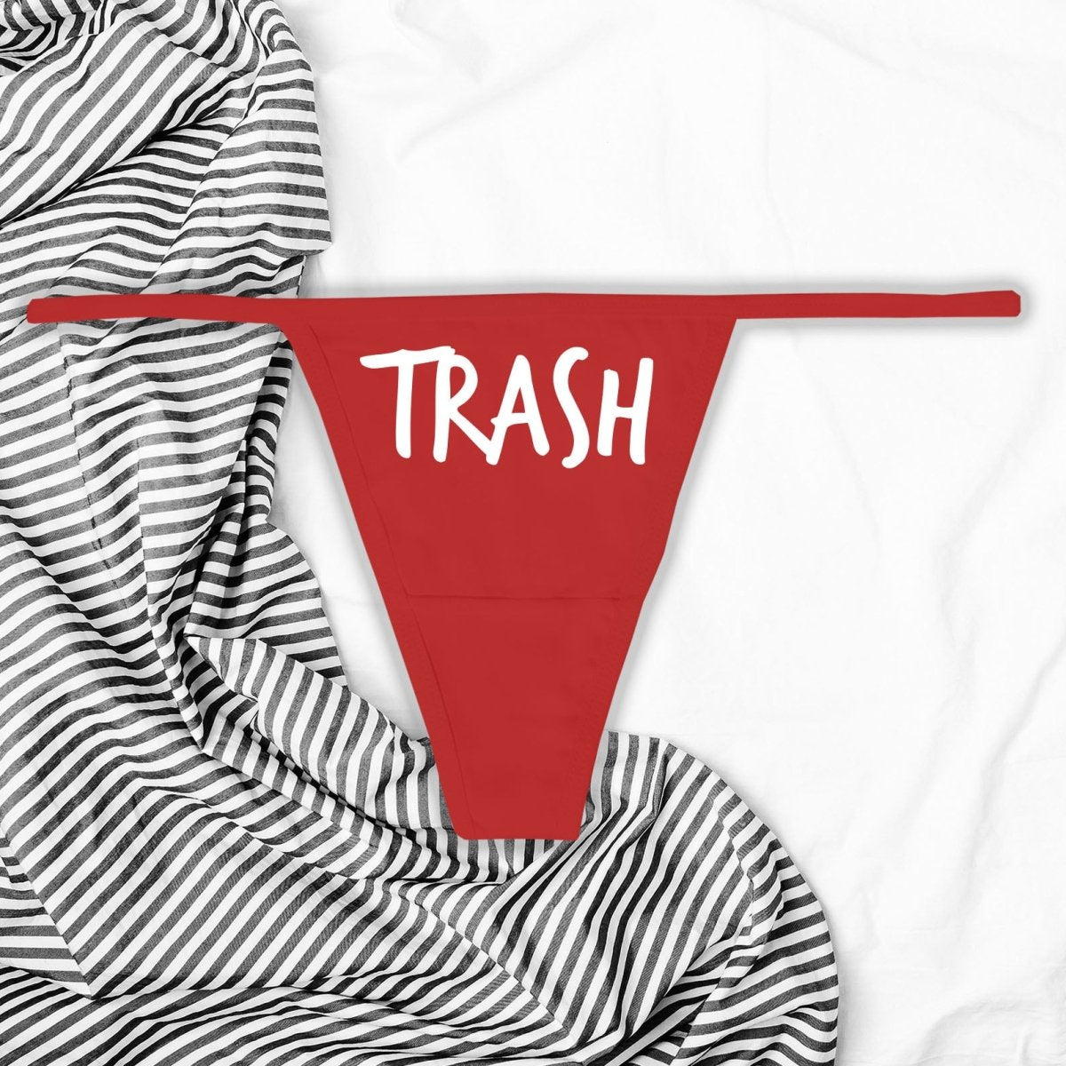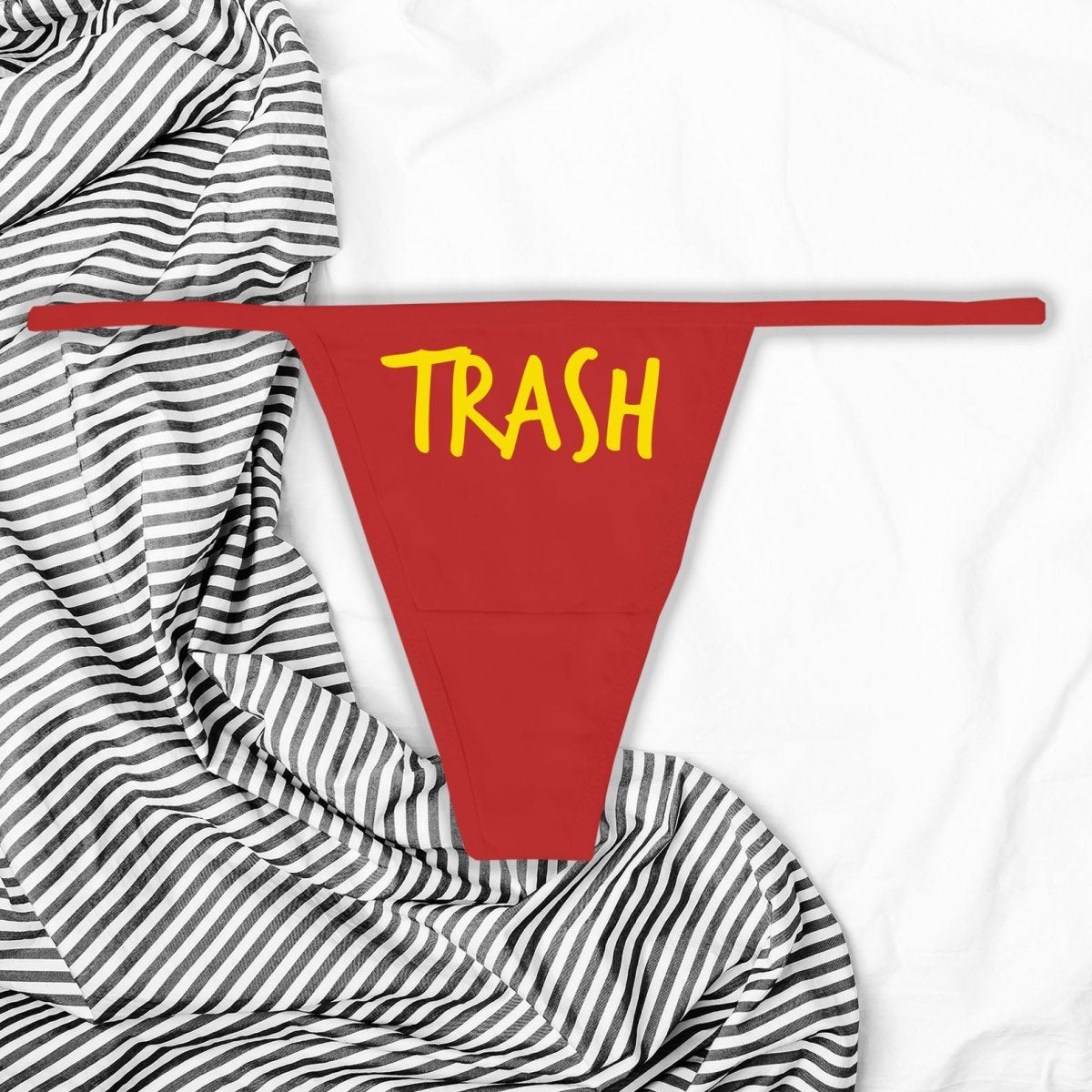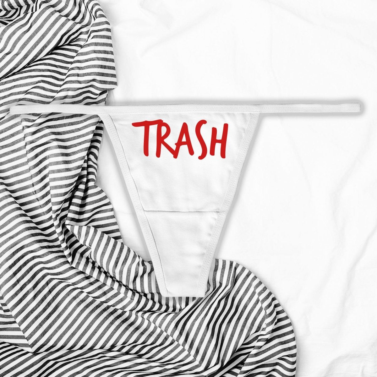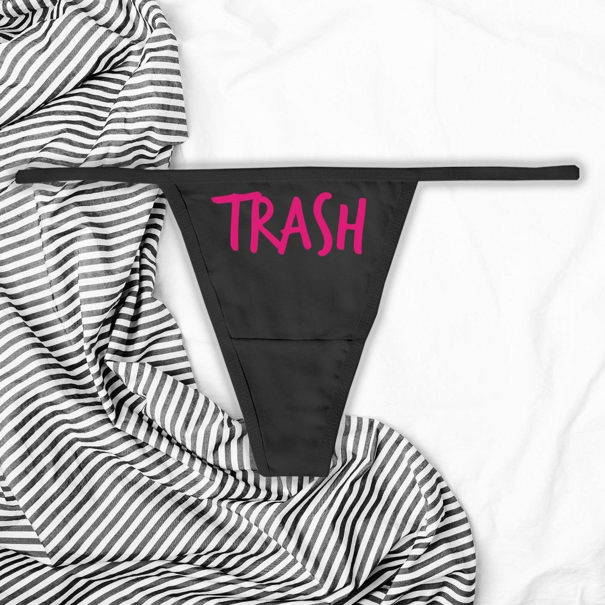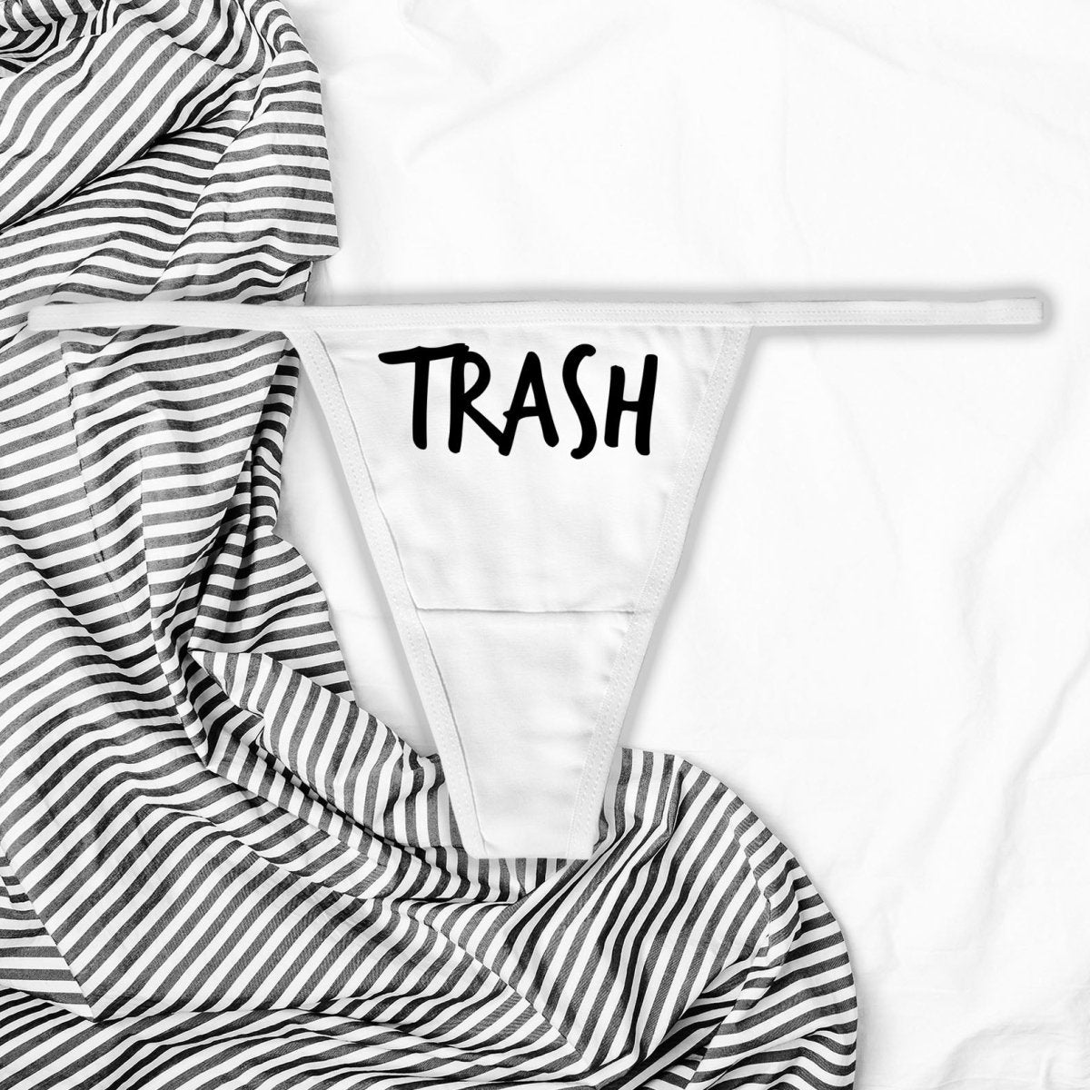 Step into a world where taboo becomes a statement of empowerment with our 'Trash' thong panties. Perfect for those who cherish their rebellious spirit and aren't afraid to challenge the norm, this piece is all about embracing individuality with a dash of kink.
