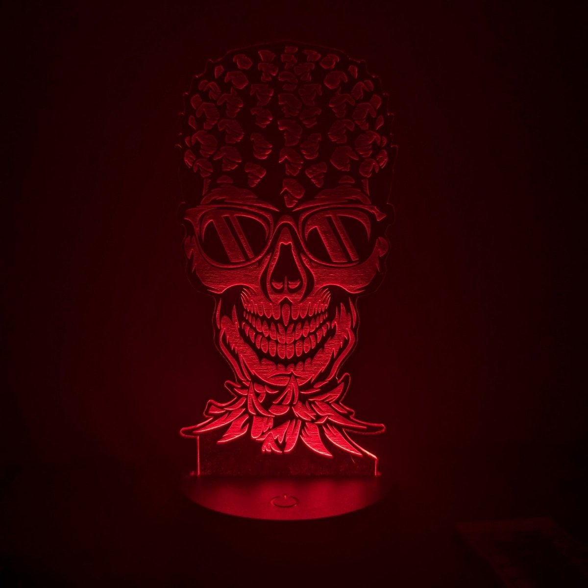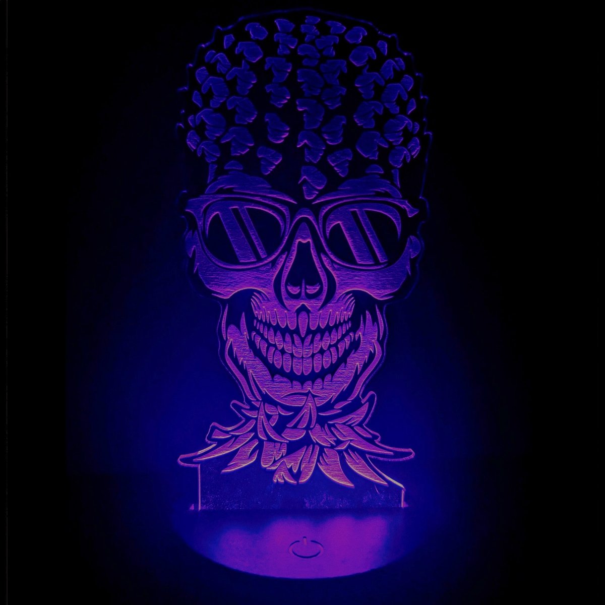 Perfect for special occasions, parties, or just adding some flair to your everyday decor, this LED light is versatile and stylish. Whether you're looking to spice up your decor or find a unique gift, the Upside Down Pineapple Skull LED Light is sure to impress and delight.
