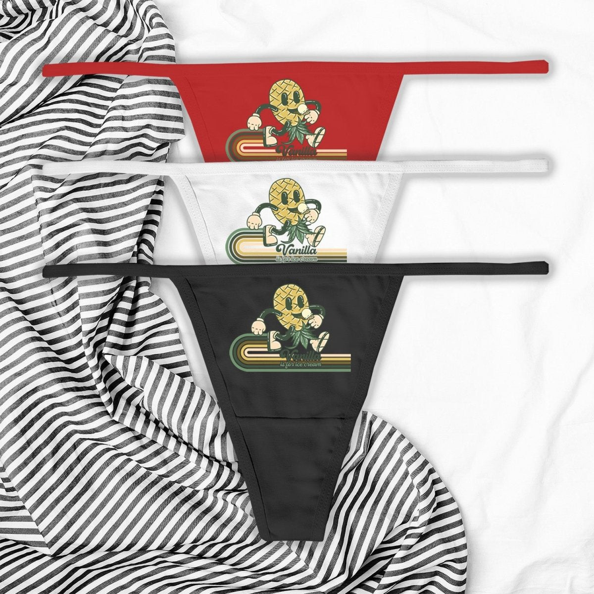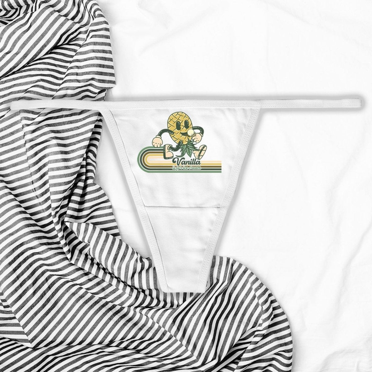 Featuring our playful, upside-down Pineapple Joe, set against a vintage-inspired backdrop, this thong is all about the hidden treasures of life. As he indulges in his vanilla ice cream cone, Pineapple Joe subtly hints at the spicy undertones of the swinger's lifestyle, reminding us that sometimes the ordinary is best left to the tastebuds.
