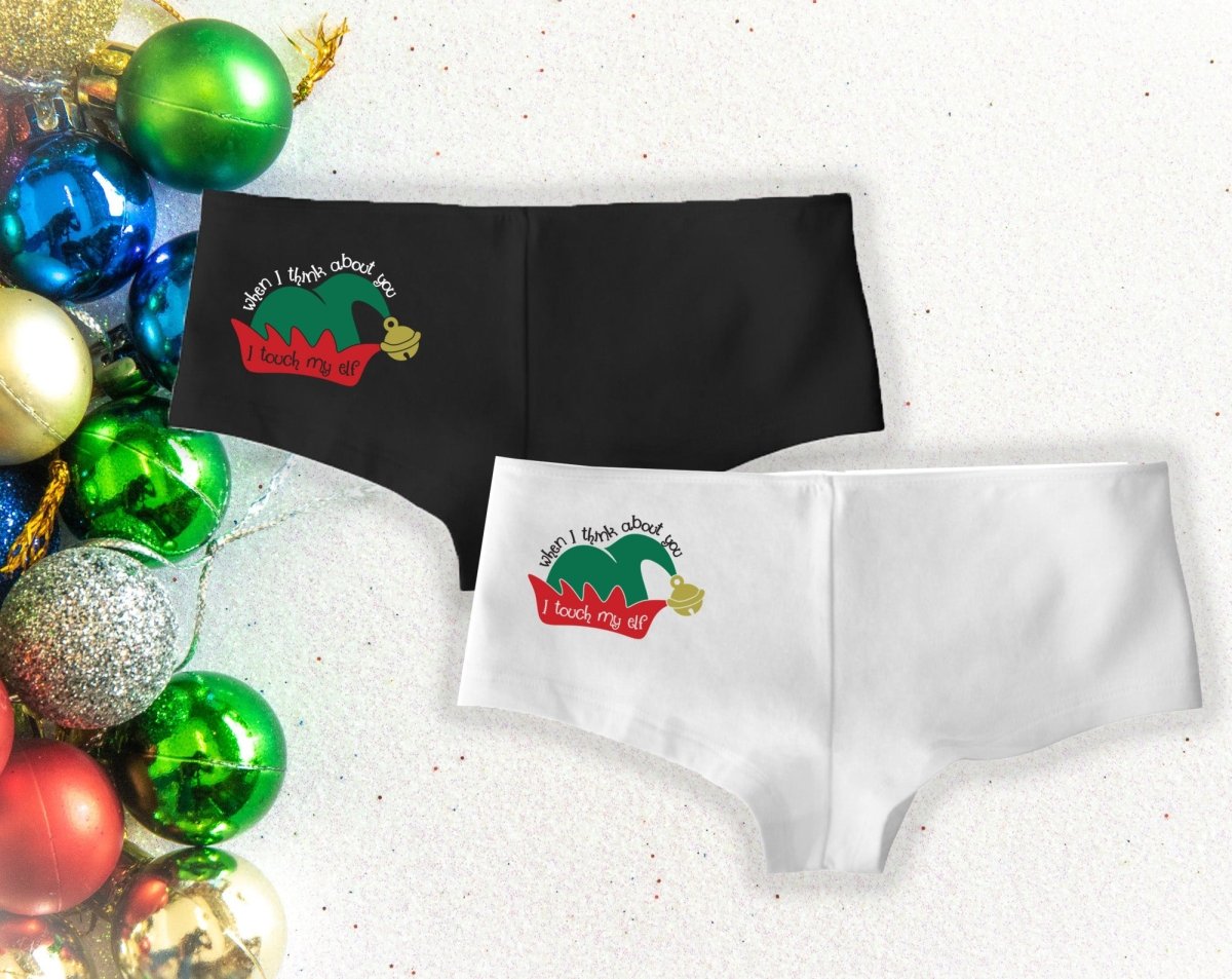 When I think About You I Touch My Elf Thong | Christmas Panties Panties | Sexy Slutty Funny Underwear Lingerie