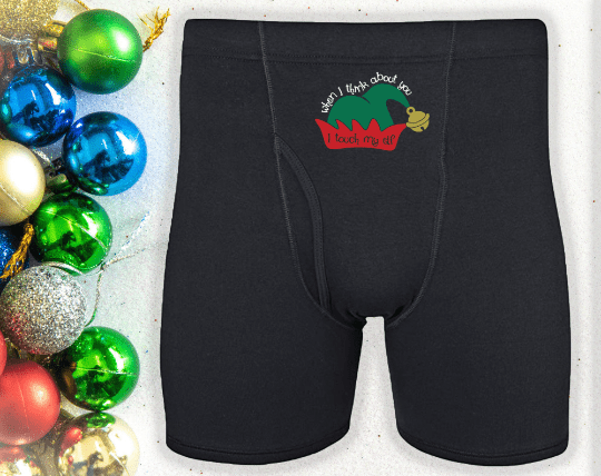 Black Boxer Briefs with When I think About You I Touch My Elf on the Front